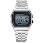 Relógio eletrônico LED de venda quente em comércio exterior, tira de aço masculina e feminina A159, relógio de moda estilo original, tendência de moda multifuncional